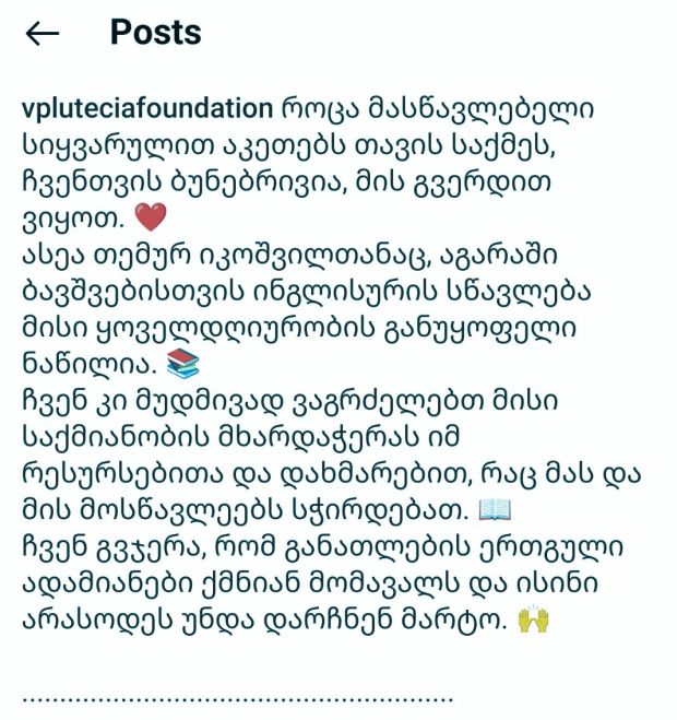სულში ჩამწვდომი გამოხმაურება ფონდი “ლუტეცია” წერს ინსტაგრამზე: Share: Click to share on Facebook (Opens in new window) Facebook Click to share on LinkedIn (Opens in new window) LinkedIn Click to share on X (Opens in new window) X Click to share on Telegram (Opens in new window) Telegram Click to share on WhatsApp (Opens in new window) WhatsApp მეტი Click to email a link to a friend (Opens in new window) ელფოსტა Click to print (Opens in new window) ბეჭდვა Like იტვირთება. . . Related