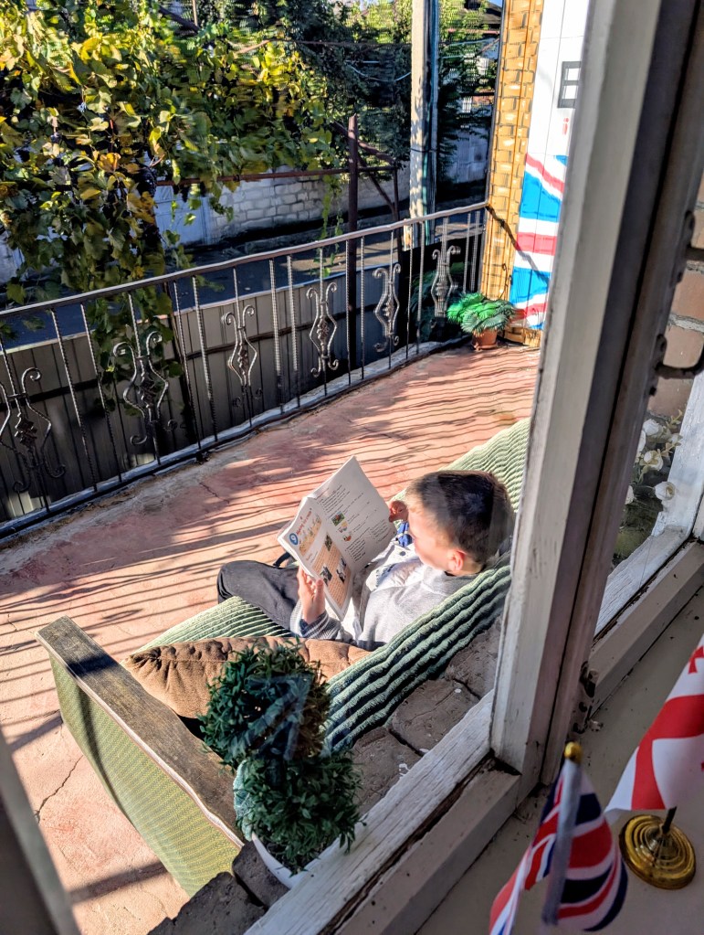 ერთსა და იმავე დროს, როდესაც კლასი ჯერ არ არის გახსნილი, ჩემს აივანზე პატარა ბიჭი ჩნდება. იგი 30-40 წუთით ადრე მოდის ინგლისურზე.